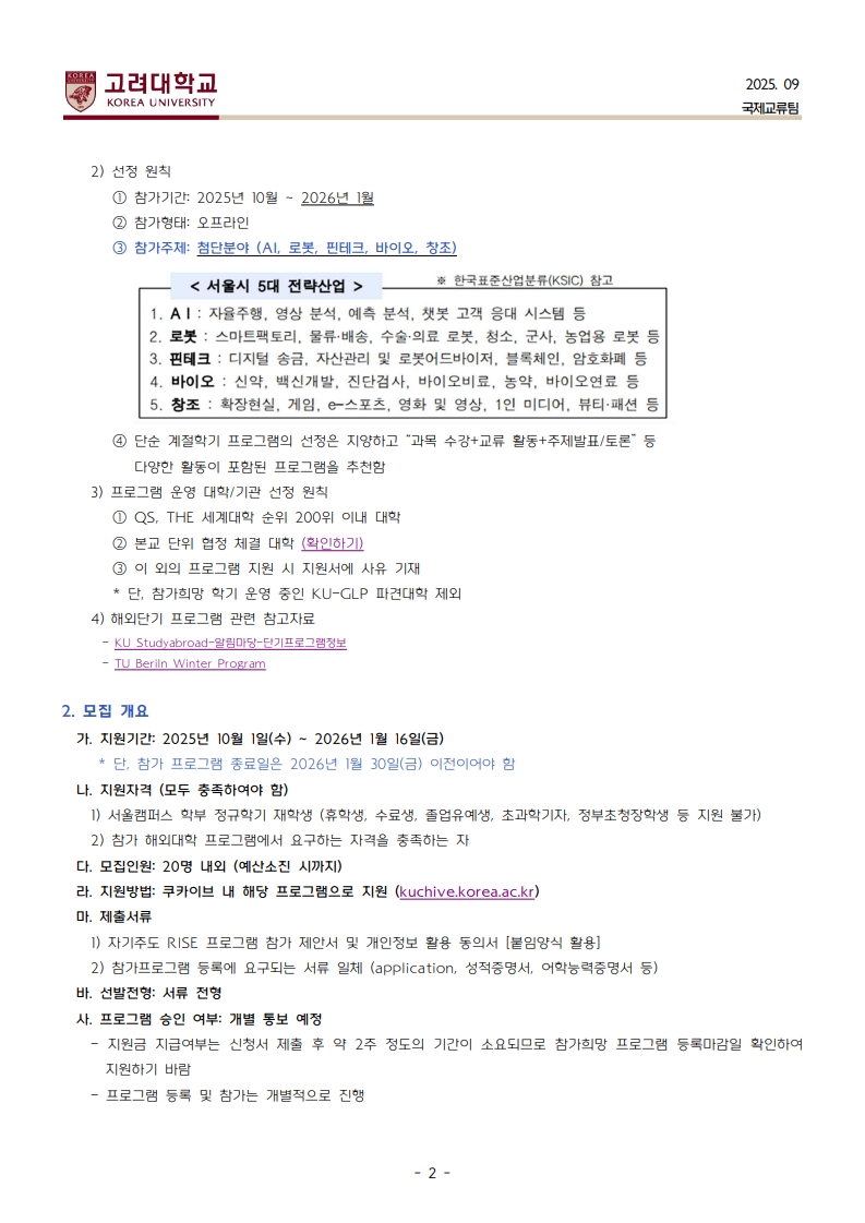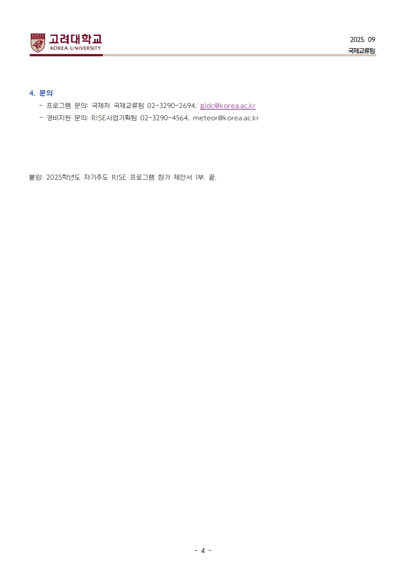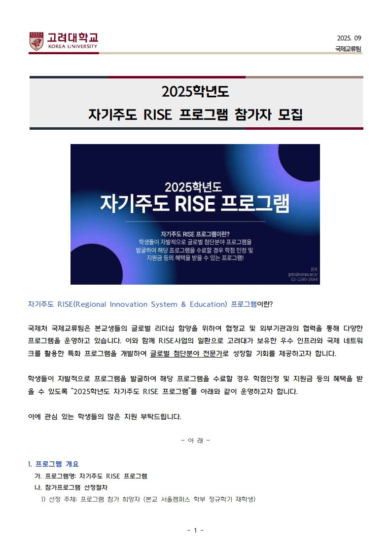 제목 | 2025학년도 자기주도 RISE 프로그램 |